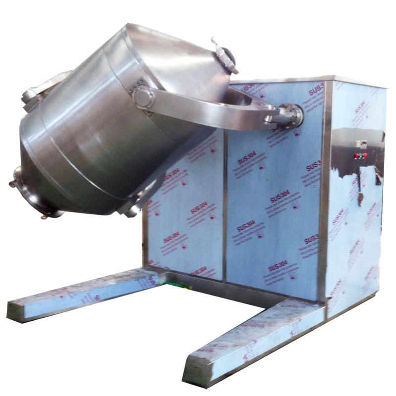 间进行独特的平移、转动、摇滚运动。其工作的原理是通过运动产生的湍流则具有变化的能量梯度,从而使被混合的的物料中各质